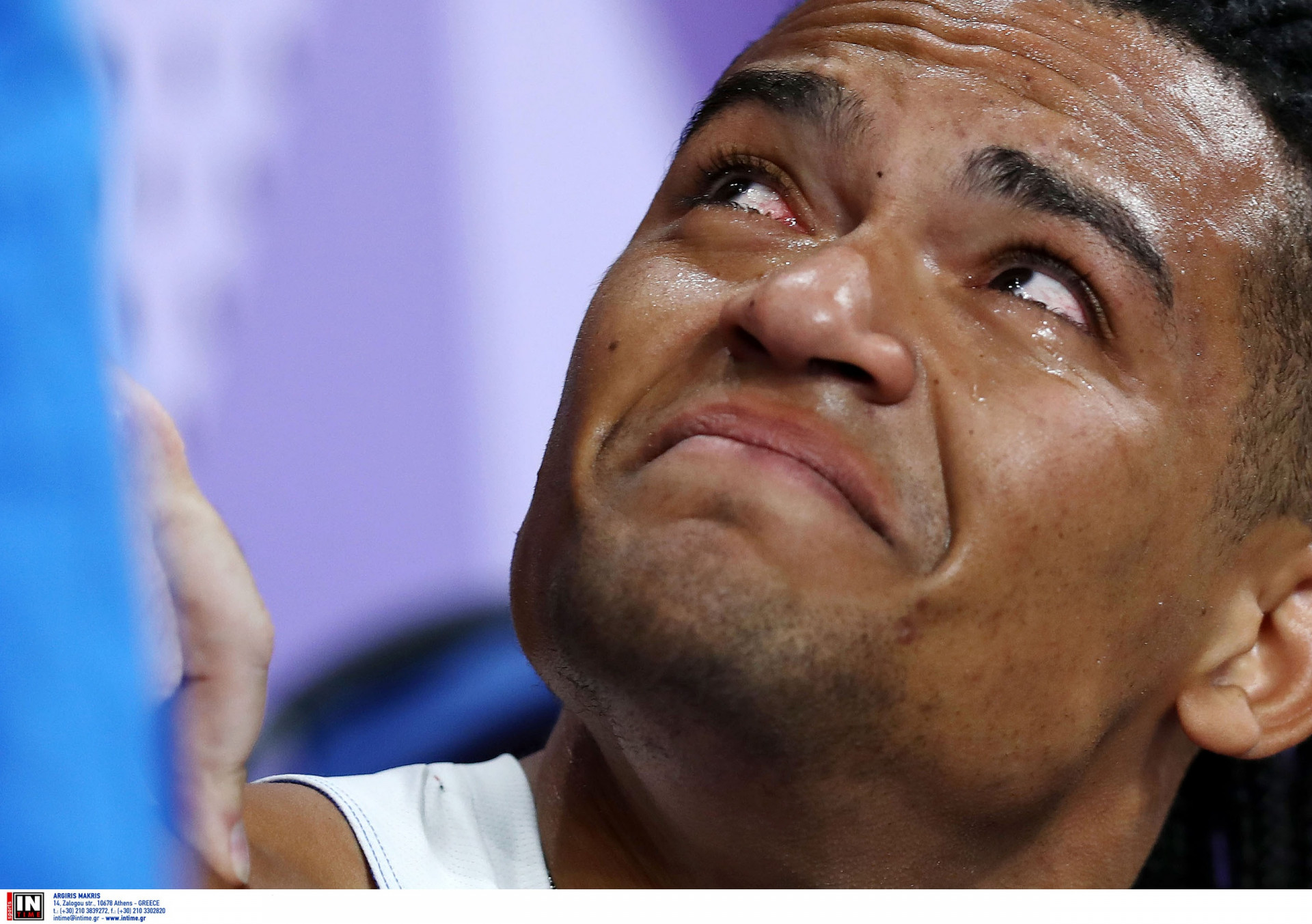 Μετά το τέλος του αγώνα ο Εμμανουήλ Καραλής δεν μπορούσε να κρύψει τη συγκίνηση του και κάθισε σε μια γωνία, βάζοντας τα κλάματα.
