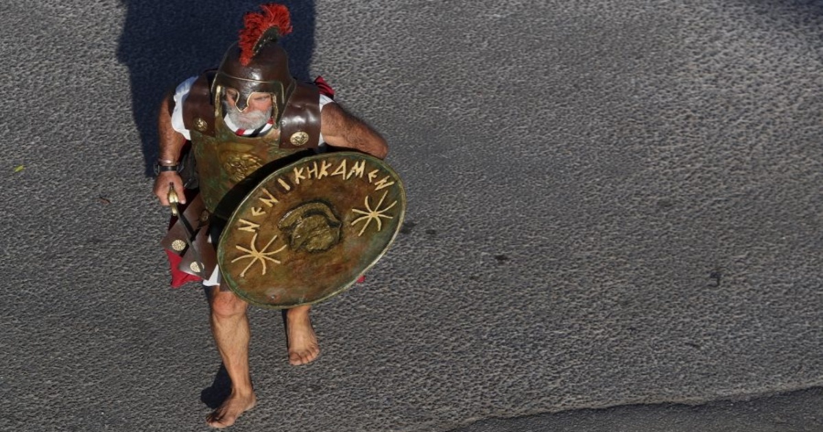 Ωστόσο, τις εντυπώσεις όλων τράβηξε ένας δρομέας, ο οποίος ήταν ντυμένος σαν αρχαίος Έλληνας.