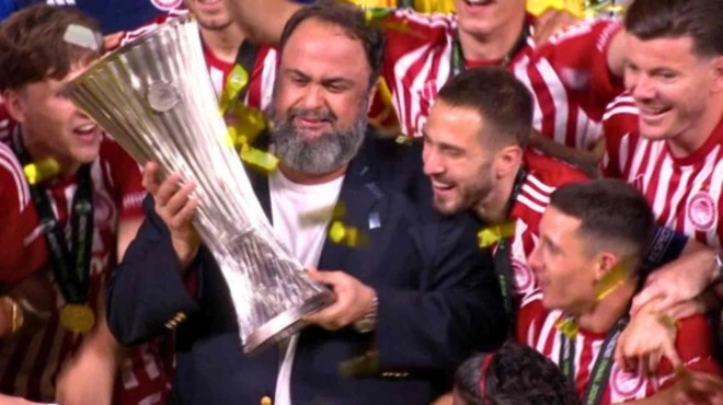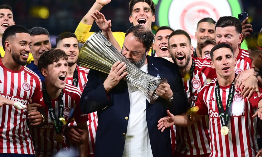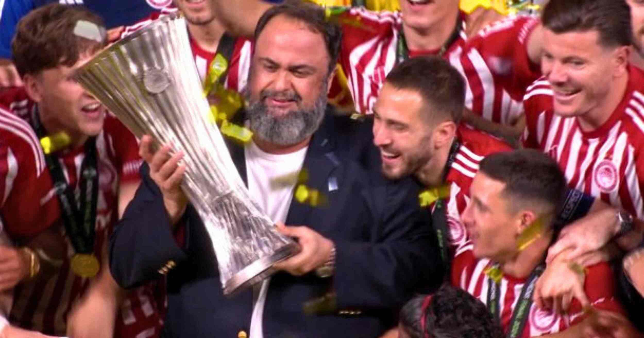 Oλυμπιακός: Ο μικρός Γιαννάκης σήκωσε το κύπελλο του Conference League