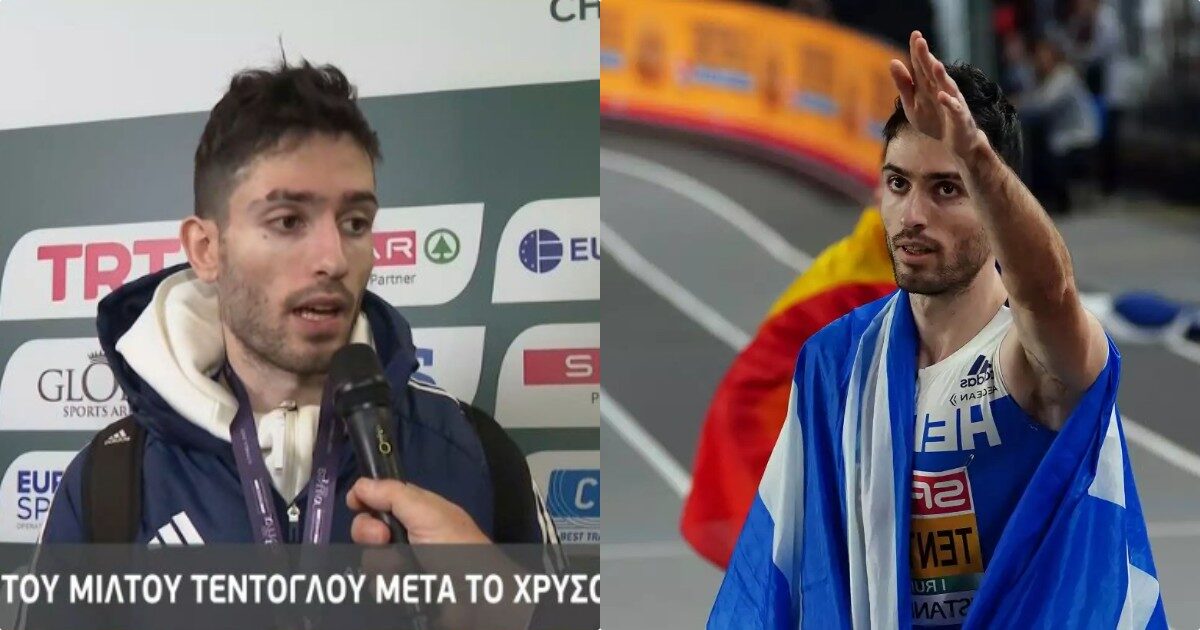 Ο Έλληνας χρυσός Αθλητής, Μίλτος Τεντόγλου, αναφέρθηκε στην τραγωδία στα Τέμπη, μετά την κατάκτηση του χρυσού μεταλλίου στο Ευρωπαϊκό Πρωτάθλημα κλειστού στίβου και είπε πως είναι στεναχωρημένος και κανείς και τίποτα δεν μπορεί να απαλύνει τον πόνο των συγγενών των θυμάτων.