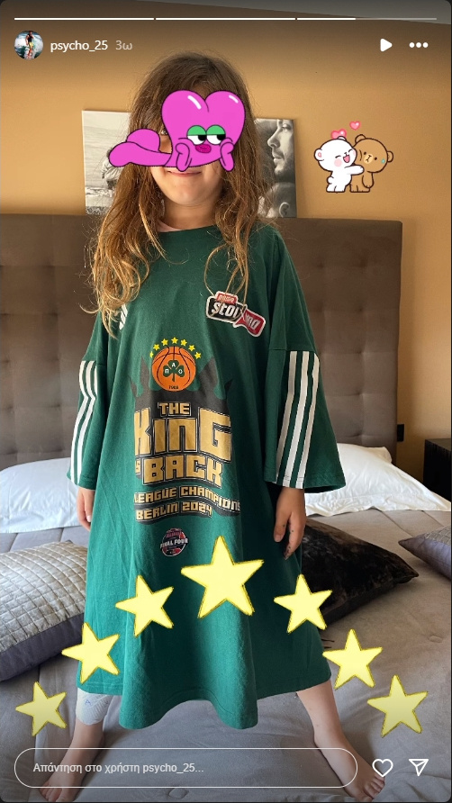 Τέλος, ανέβασε φωτογραφία της κόρης του, Αλεξάνδρα να φοράει την μπλούζα με τα 7 αστέρια του Παναθηναϊκού.
