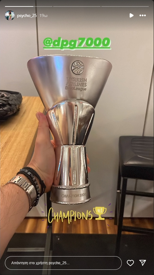 Ο Παναθηναϊκός κατέκτησε την κορυφή της Ευρώπης και ο Θοδωρής Μαροσούλης δημοσίευσε φωτογραφία του κυπέλλου στον προσωπικό του λογαριασμό στο Instagram: