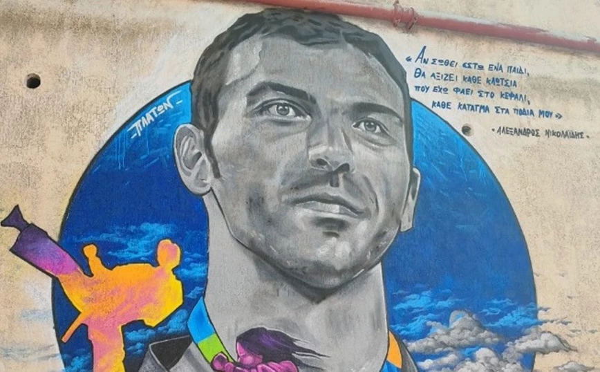 Συγκινεί το γκράφιτι που κοσμεί πλέον τον τοίχο του κολυμβητηρίου του Βύρωνα, με το πρόσωπο του δις «ασημένιου» Ολυμπιονίκη του Τάε Κβον Ντο, Αλέξανδρου Νικολαϊδη, ο οποίος εφυγε από τη ζωή μετά από «μάχη» με τον καρκίνο, στις 14 Οκτωβρίου, σε ηλικία 43 ετών.