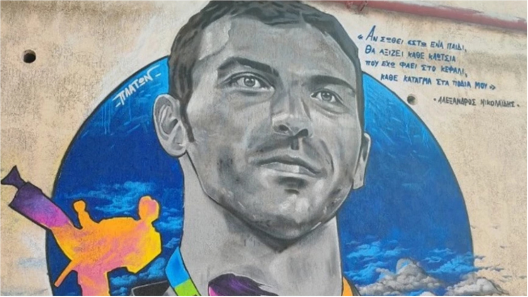 Συγκινεί το γκράφιτι που κοσμεί πλέον τον τοίχο του κολυμβητηρίου του Βύρωνα, με το πρόσωπο του δις «ασημένιου» Ολυμπιονίκη του Τάε Κβον Ντο, Αλέξανδρου Νικολαϊδη, ο οποίος εφυγε από τη ζωή μετά από «μάχη» με τον καρκίνο, στις 14 Οκτωβρίου, σε ηλικία 43 ετών.