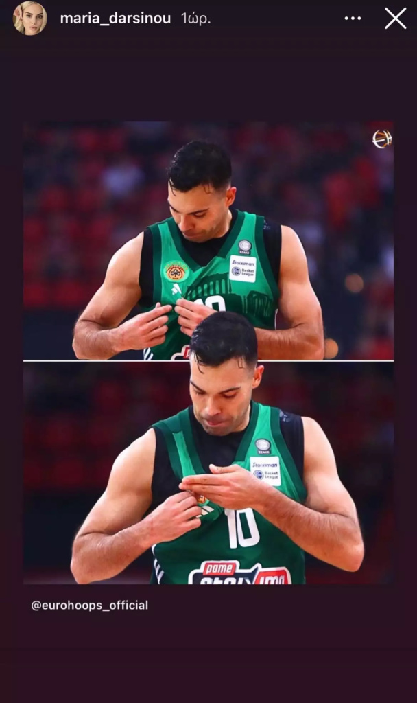 Παρακολουθώντας όλα αυτά η σύζυγος του Κώστα Σλούκα, Μαρία Δαρσινού που σε λίγες ημέρες πρόκειται να φέρει στον κόσμο το δεύτερο παιδί τους, θέλησε να δείξει τη στήριξή της στον αθλητή δημοσιεύοντας ένα στορι στο οποίο ανέφερε, «Για γέλια», ενώ μερικές ώρες μετά δημοσίευσε και μια φωτογραφία με την κίνηση του συζύγου της να δείχνει τα επτά αστέρια του Παναθηναϊκού.