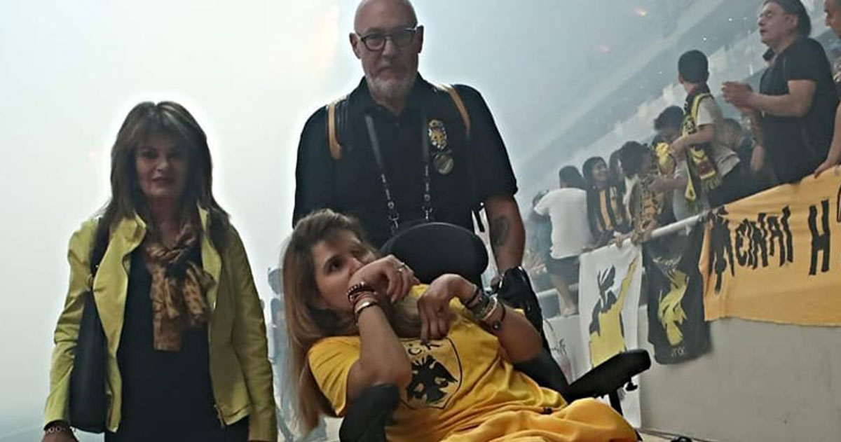 Η 23χρονη Μυρτώ, το κορίτσι που είχε συγκλονίσει το Πανελλήνιο όταν έμεινε ανάπηρη μετά από επίθεση Πακιστανού σε παραλία της Πάρου, δεν μπορούσε να λείπει από την επιστροφή της αγαπημένης της ομάδας στην φυσική της έδρα.