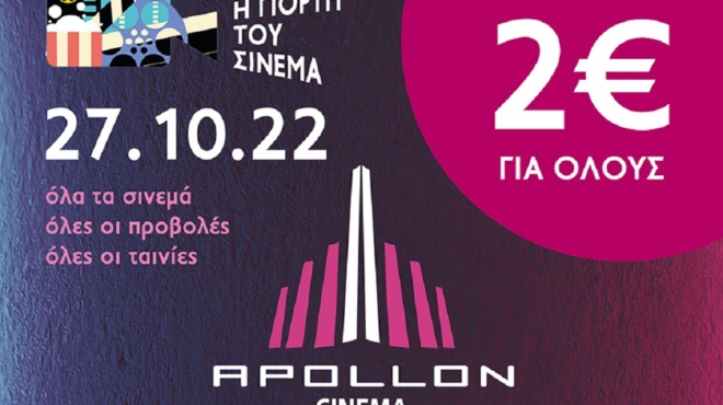 ΠΟΛΙΤΙΣΜΟΣ Γιορτή του Σινεμά: Είσοδος με 2 ευρώ σε όλες τις αίθουσες της χώρα μόνο για μια ημέρα Μόνο για μία ημέρα 2 ευρώ όλες οι ταινίες σε όλες τα σινεμά της χώρας Διαλέξτε όποια ταινία θέλετε σε οποιαδήποτε αίθουσα της χώρας και δείτε τη μόνο με 2 ευρώ. Το γεγονός έρχεται την Πέμπτη 27 Οκτώβρη, την ημέρα γιορτής του Σινεμά. Ταινίες δράσης, κωμωδίες, κινούμενα σχέδια, δραματικές ταινίες και θρίλερ με ενιαία τιμή […]