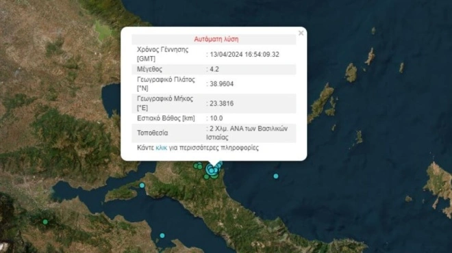 ΕΛΛΑΔΑ Σεισμός 4,2 Ρίχτερ στην Ιστιαία – Αισθητός και στην Αττική Σεισμός στην Ιστιαία που έγινε αισθητός και στην Αττική σημειώθηκε λίγο πριν τις 20:00. Πιο αναλυτικά και σύμφωνα με την αυτόματη λύση του Γεωδυναμικού Ινστιτούτου, ο σεισμός ήταν μεγέθους 4,2 Ρίχτερ. Η τοποθεσία του είναι 2 χλμ ανατολικά των Βασιλικών της Ιστιαίας και το εστιακό βάθος εκτιμάται στα 10 χλμ. Περισσότερα σε λίγο… Συνεντεύξεις 18/11/2025 […]