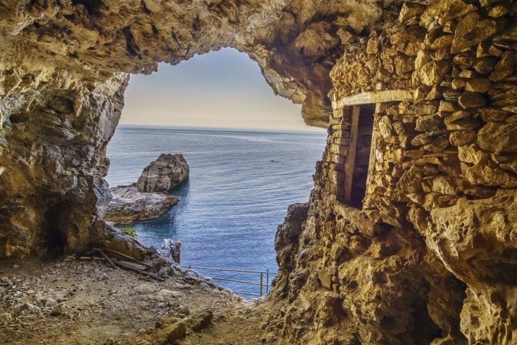 Εκεί, θα δείτε τα πέτρινα ερείπια και, στη μικρότερη σπηλιά, το εκκλησάκι της Παναγίας της Μεγαλομάτας. Η εικόνα της Παναγίας έχει μεταφερθεί στην Τσαγκαράδα, ενώ η παράδοση θέλει έναν ασκητή να διδάσκει κρυφά γράμματα στα παιδιά της περιοχής τον 17ο αιώνα.