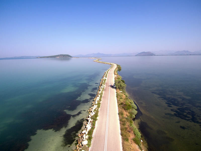 Ωστόσο, αυτό που κλέβει την παράσταση στην διαδρομή προς την Κορωνησία είναι ο ασφαλτοστρωμένος δρόμος μήκους περίπου 20 χιλιομέτρων. Σαν μαγική γέφυρα, ενώνει το μικρό νησάκι με την Άρτα και ο δρόμος φαίνεται σαν να αιωρείται πάνω στην επιφάνεια του νερού.