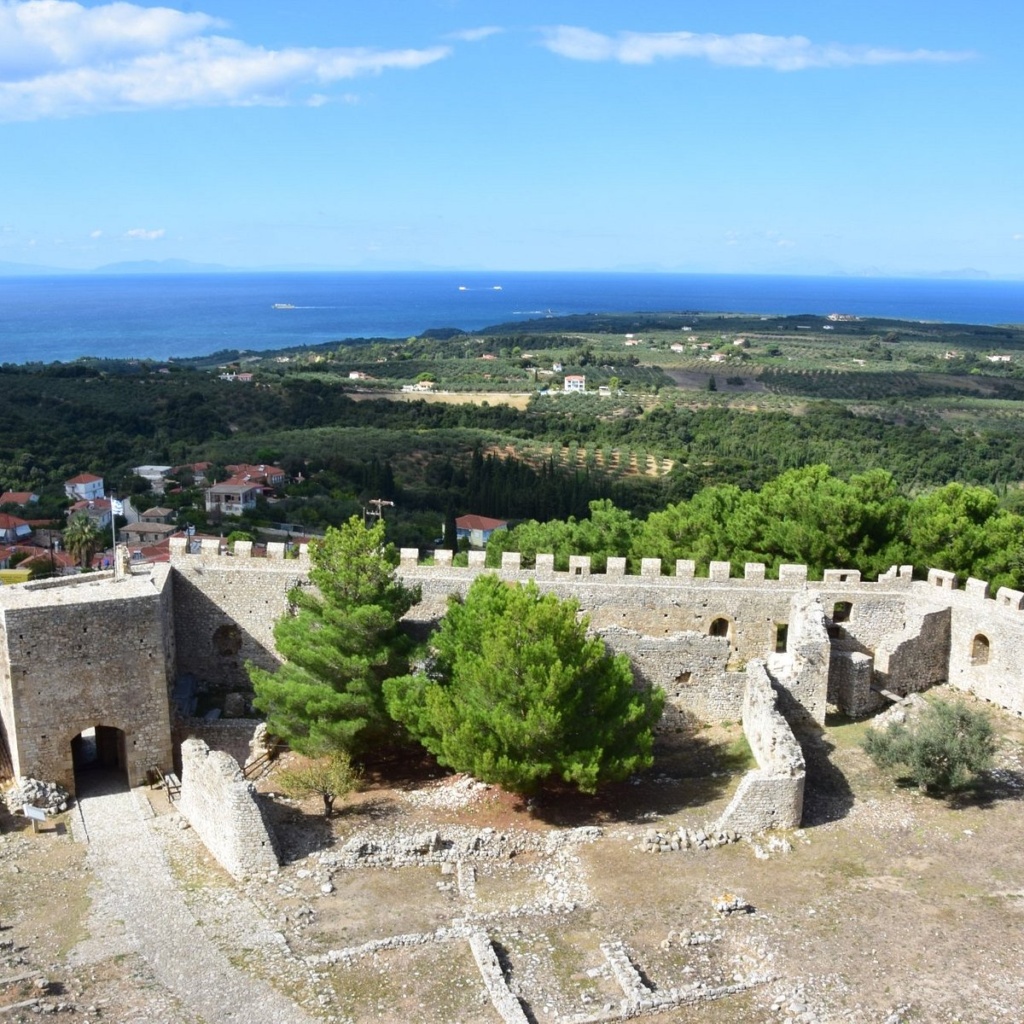 Χτισμένο μεταξύ 1220-1223 από τον πρίγκιπα της Αχαΐας Γοδεφρείδο Α΄ Βιλλεαρδουίνο, το κάστρο έπαιξε σημαντικό ρόλο στην ιστορία του Πριγκιπάτου, με πρωτεύουσα την Ανδραβίδα. Σήμερα, έρχεται ξανά στο προσκήνιο, καθώς στις αρχές Ιουνίου φιλοξένησε τα γυρίσματα της ταινίας “The Return”, βασισμένη στην Οδύσσεια του Ομήρου.