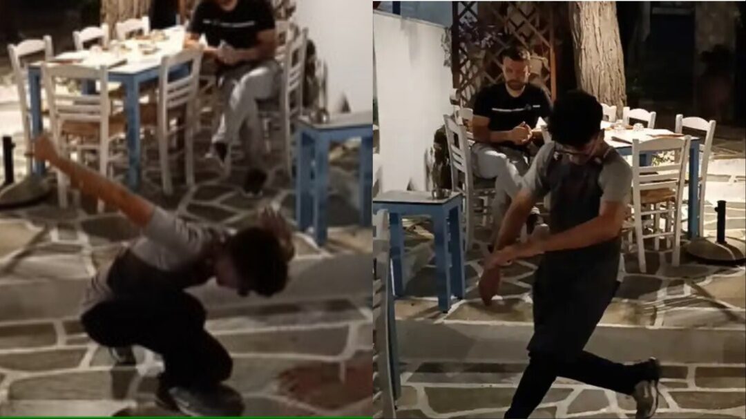 Πιτσιρικάς σερβιτόρος στην Πάρο χόρεψε την “Ευδοκία”