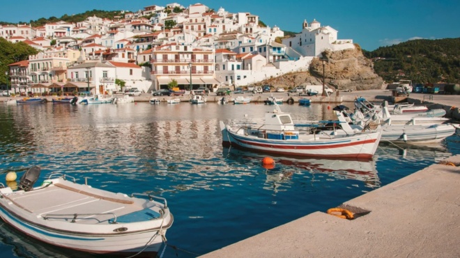 Η Χώρα της Σκοπέλου, πρωτεύουσα του νησιού, αποτελεί μια μαγευτική μικροπολιτεία που μαγνητίζει τους επισκέπτες με την αξεπέραστη ομορφιά της. Βρίσκεται σε ένα από τα πιο πράσινα νησιά του Αιγαίου, με το 80% της έκτασής του να καλύπτεται από πυκνά πευκοδάση, αιωνόβιες ελιές και δαμασκηνιές.
