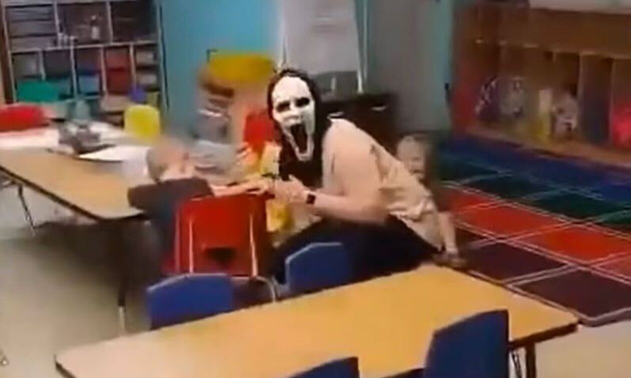 Ενα συγκλονιστικό βίντεο κυκλοφορεί σήμερα στο διαδίκτυο όπου δείχνει μια δασκάλα… να τρομάζει τα κακά παιδάκια ενός παιδικού σταθμού με μάσκα του Scream.