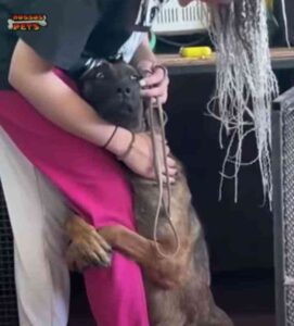 Συγκεκριμένα, σύμφωνα με το βραζιλιάνικο Só Notícia Boa, αρχικά ο Γερμανικός Ποιμενικός την ικέτευε με το βλέμμα του, ενώ στη συνέχεια της αγκάλιασε στο πόδι και δεν την άφηνε με τίποτα.