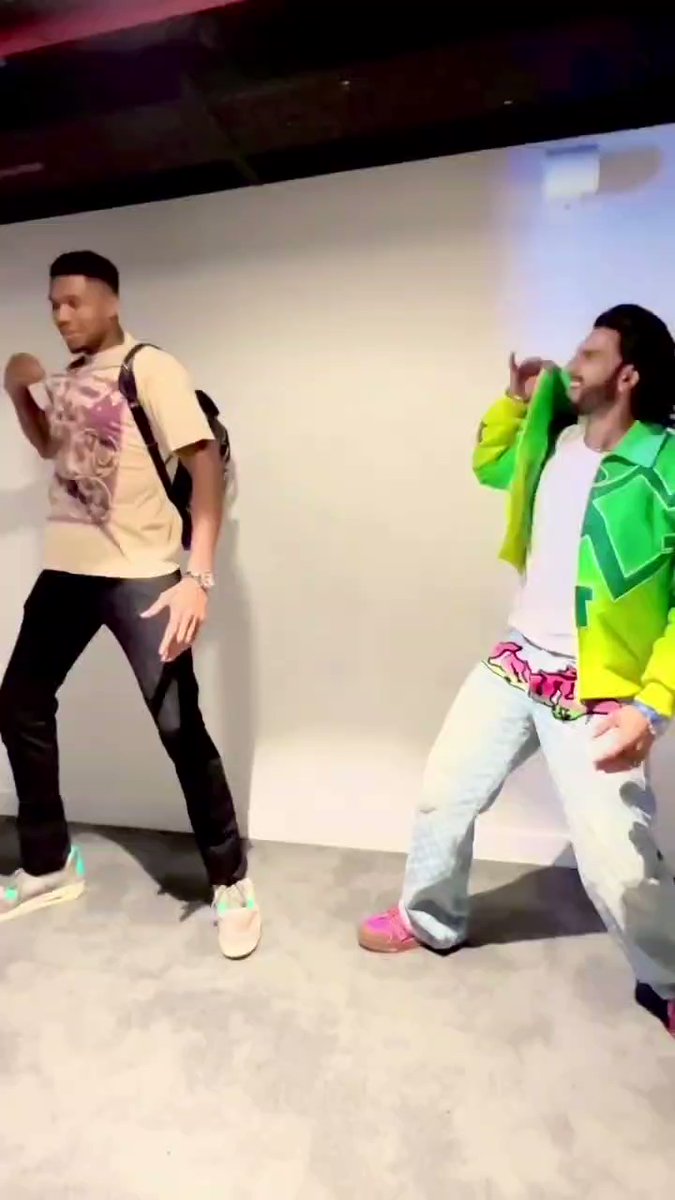 Viral έγινε, λοιπόν, το βίντεο με τον Ινδό ηθοποιό Ranveer Singh που μαθαίνει στον Γιάννη Αντετοκούνμπο να χορεύει λες και πρωταγωνιστεί σε ταινία του Bollywood. Ο 37χρονος ηθοποιός, ένας από τους διασημότερους και πιο ακριβοπληρωμένους του είδους, όταν συναντήθηκε με τον σούπερ σταρ του NBA άρχισε να του δείχνει ορισμένες κινήσεις και μάλιστα «σκάρωσε» μια απλή χορογραφία επί τόπου.