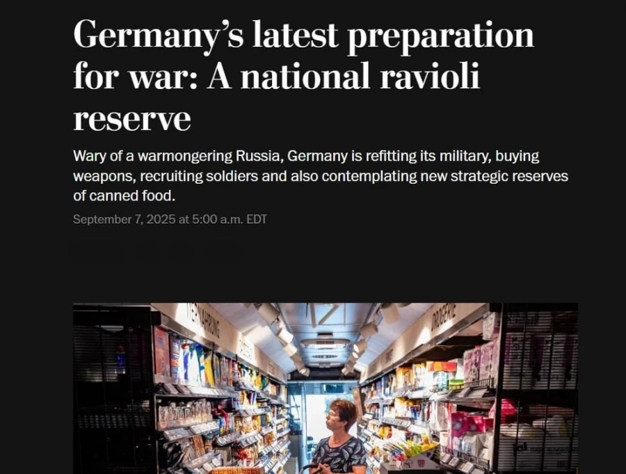 Οι αρχές στην Γερμανία κάνουν μια αλλαγή διαδικασία σχηματισμού κρατικού αποθέματος τροφίμων σε περίπτωση έκτακτης ανάγκης και πολέμου με τη Ρωσία. Θέλουν να δημιουργήσουν ένα στρατηγικό απόθεμα ζυμαρικών ραβιόλι.