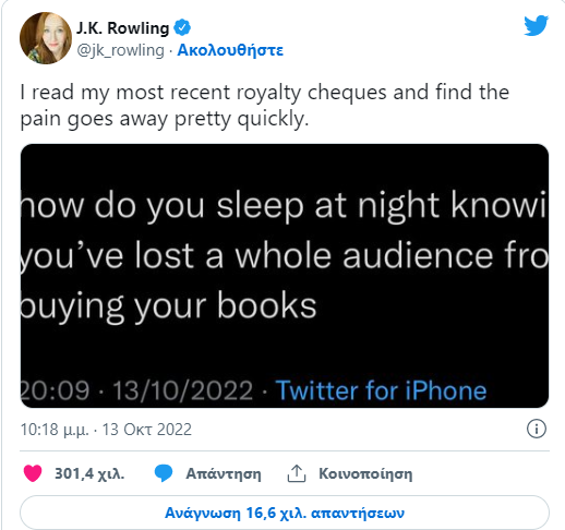 Η απάντηση της Τζ. Κ. Ρόουλινγκ στο ερώτημα χρήστη του Twitter