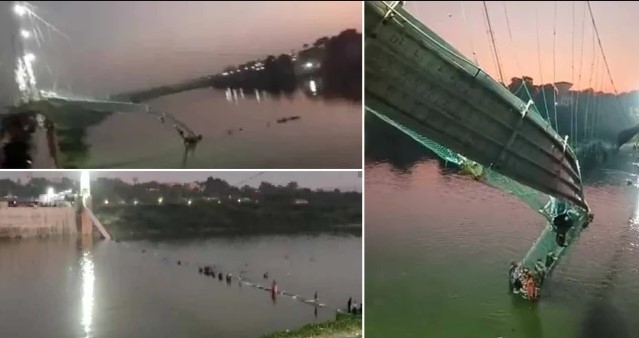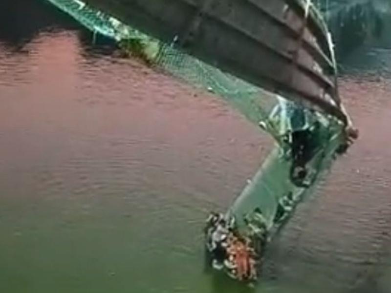 Περισσότεροι από 400 άνθρωποι βρίσκονταν πάνω σε αυτήν τη γέφυρα της πόλης Μόρμπι τη στιγμή της καταστροφής. Πολλοί από αυτούς έπεσαν στα νερά του ποταμού Ματσού, μετέδωσε το τηλεοπτικό κανάλι Zee News.