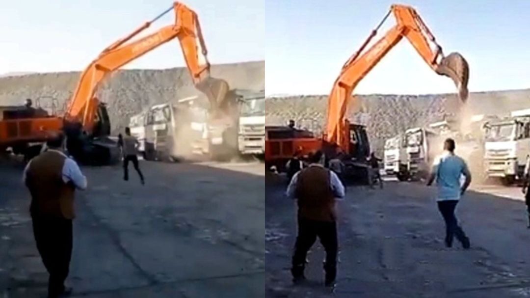 Şırnak’ta kömür ocağında çalışan işçi, ücretini alamayınca kepçeyle iş yerindeki beş kamyonun kabin kısmını parçaladı.