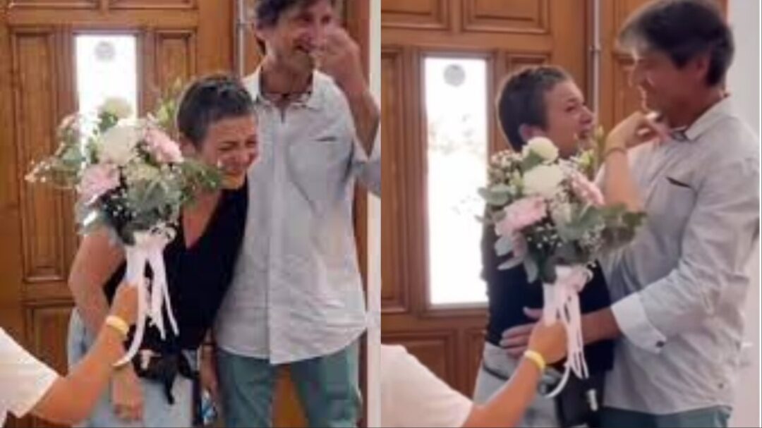 “Εκείνος: “Ετοιμαστείτε, θα πάμε στο εστιατόριο, αλλά πριν φτάσω εκεί πρέπει να πάω στο δημαρχείο για να πάρω ένα έγγραφο”. Εκείνη: “Ναι, μην ανησυχείς, θα σε περιμένω στο αυτοκίνητο”. Φτάνοντας μπροστά στο δημαρχείο, επέμεινε να μπει μαζί του στο δημαρχείο. Άνοιξε την πόρτα και στη συνέχεια. Νόμιζε ότι γινόταν άλλος γάμος και δεν ήθελε να μπει μέσα για να τον διαταράξει”, αναφέρει η λεζάντα του βίντεο.