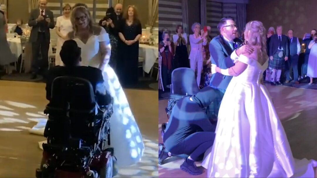 Γαμπρός σε αναπηρικό αμαξίδιο: Ένας γαμπρός με αναπηρία από σκλήρυνση κατά πλάκας εξέπληξε ευχάριστα τους φίλους και την οικογένειά του όταν, μετά από πέντε χρόνια κινούμενος με αναπηρικό αμαξίδιο, σηκώθηκε όρθιος και χόρεψε για πρώτη φορά με τη νύφη του.