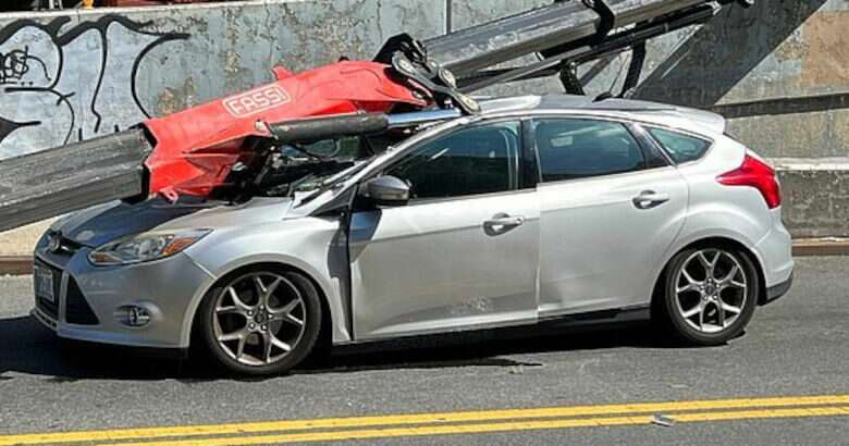 Η 22χρονη οδηγός περίμενε σταματημένη σε φανάρι δρόμου της Νέας Υόρκης, όταν ένας γερανός έπεσε στο αυτοκίνητό της