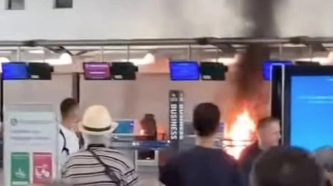 Το περιστατικό σημειώθηκε το πρωί της Τετάρτης, στο Τερματικό 1 του αεροδρομίου, προκαλώντας πανικό σε επιβάτες που έτρεχαν έντρομοι να απομακρυνθούν από τους καπνούς και τις φλόγες.