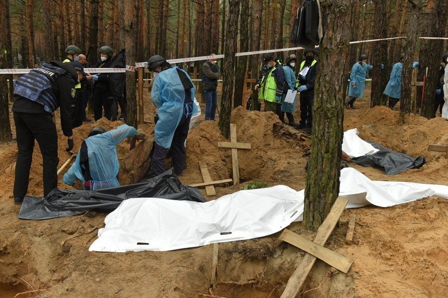 Περίπου 450 πτώματα – εκ των οποίων τα περισσότερα, σύμφωνα με την Ουκρανία, ήταν αμάχων – βρέθηκαν σε χώρους ομαδικής ταφής κοντά στο Ιζιούμ, αφού τα ρωσικά στρατεύματα εκδιώχθηκαν αυτό τον μήνα από την περιοχή του Χαρκόβου, μεγάλο μέρος του οποίου ήλεγχαν από τις πρώτες εβδομάδες της στρατιωτικής εκστρατείας στην Ουκρανία.