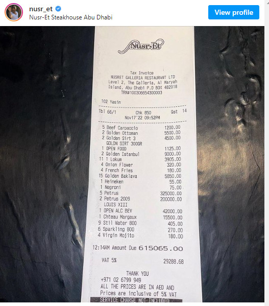 Salt Bae: Η προκλητική ανάρτηση λογαριασμού από το εστιατόριό του