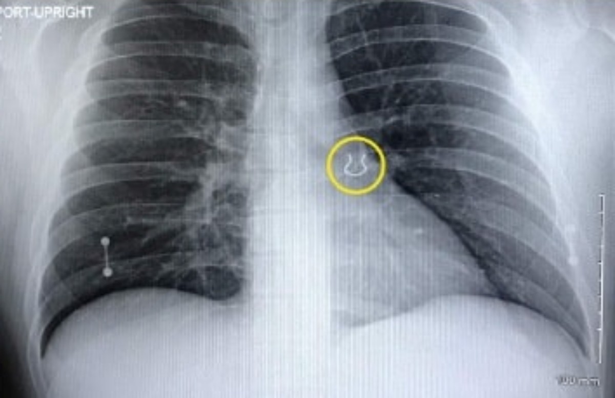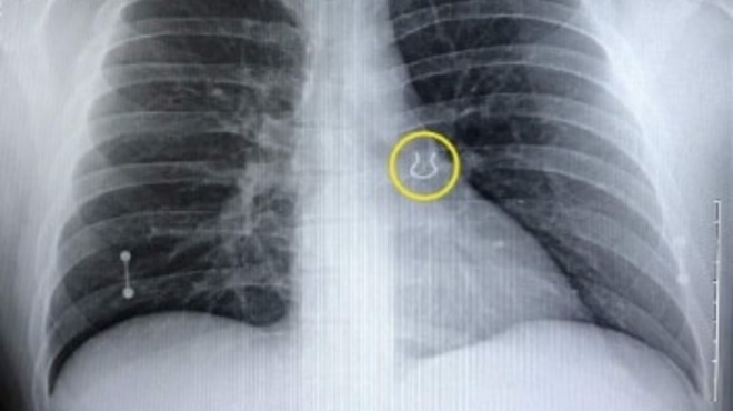 Την επόμενη μέρα πήγε στο νοσοκομείο για εξετάσεις και η ακτινογραφία αποκάλυψε κάτι ασυνήθιστο στον άνω λοβό του αριστερού πνεύμονα. Ο γιατρός του έδειξε τη σάρωση και το μικρό, αντικείμενο τον άφησε άναυδο.