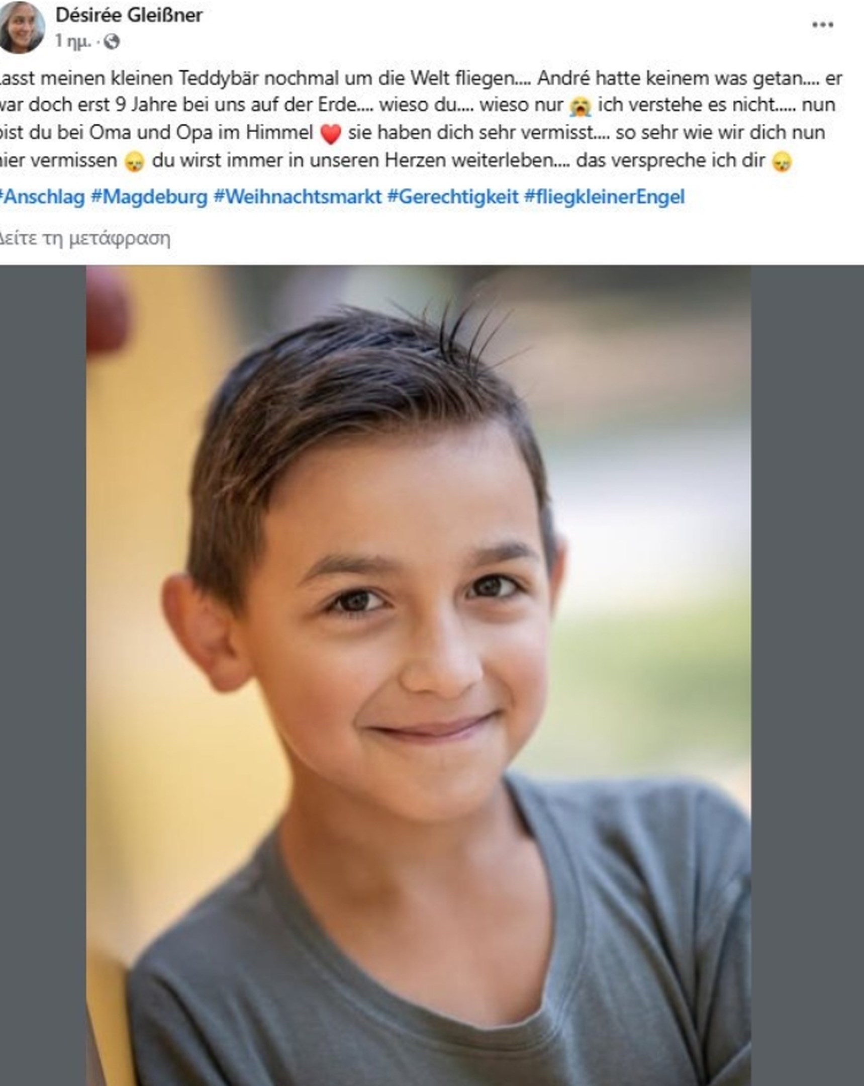 Μαγδεμβούργο: Συγκλονίζει η μητέρα του νεκρού 9χρονου – «Τώρα είσαι με τον παππού γιατί του έλειψες»