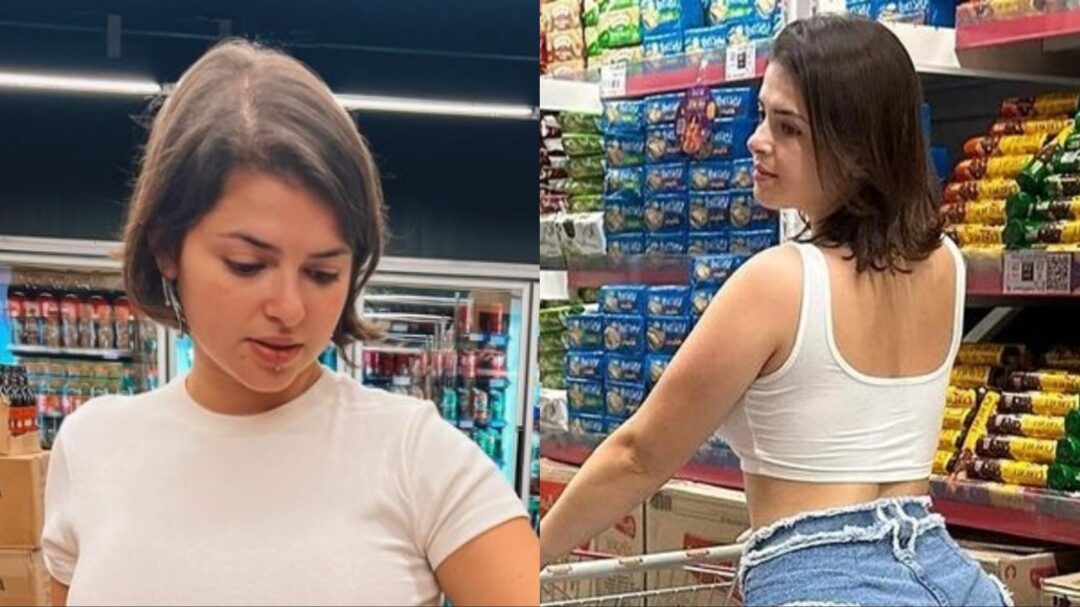 Η Kerolay Chaves περπατούσε με αυτοπεποίθηση σε σούπερ μάρκετ της Βραζιλίας, φορώντας ένα σχεδόν διάφανο λευκό μπλουζάκι χωρίς σουτιέν και ένα τζιν σορτς τόσο κοντό που αγγίζει τα όρια του μπικίνι.