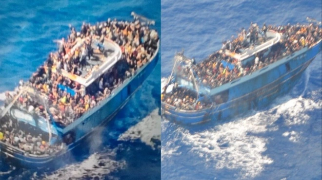Συνεχίζει να συγκλονίζει και να καθηλώνει η πρωτοφανή τραγωδία σε διεθνή ύδατα, ανοιχτά της Πύλου όπου πλοίο που μετέφερε μέχρις στιγμής άγνωστο αριθμό μεταναστών βυθίστηκε με τον καπετάνιο να εγκαταλείπει το πλοίο του θανάτου τρεις ώρες μετά την πρώτη κλήση κινδύνου. Ο απολογισμός ως τώρα αναφέρει 79 νεκρούς 104 διασωθέντες και εκατοντάδες αγνοούμενους. Ενώ πριν από λίγο κυκλοφόρησαν και νέες συνταρακτικές φωτογραφίες που απεικονίζουν εκατοντάδες ανθρώπων στοιβαγμένους στο “καρυδότσουφλο” με το σκάφος να βρίσκεται εμφανώς σε άθλια κατάσταση.
