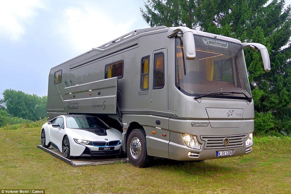 Βέβαια, αυτό το τροχόσπιτο είναι για εκείνους που έχουν αρκετά ψηφία στον τραπεζικό τους λογαριασμό αφού όπως θα δείτε δεν είναι απλά ένα αυτοκινούμενο όχημα. Διαθέτει ακόμη και εσωτερικό γκαράζ για το αυτοκίνητό σας.
