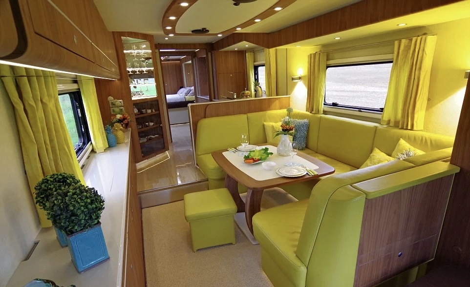 Βέβαια, αυτό το τροχόσπιτο είναι για εκείνους που έχουν αρκετά ψηφία στον τραπεζικό τους λογαριασμό αφού όπως θα δείτε δεν είναι απλά ένα αυτοκινούμενο όχημα. Διαθέτει ακόμη και εσωτερικό γκαράζ για το αυτοκίνητό σας.